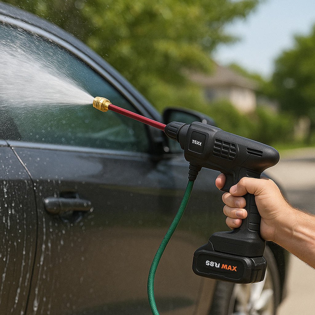 Limpieza potente en cualquier lugar. Esta hidrolavadora portátil ofrece presión profesional sin cables, ideal para lavar tu auto, moto, bicicleta o incluso regar plantas y limpiar pisos.